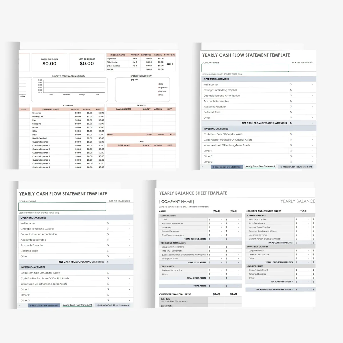 إدارة وتخطيط الأعمال: جداول لمتابعة المخزون، تقارير الفواتير، وتخطيط التقاعد والادخار.